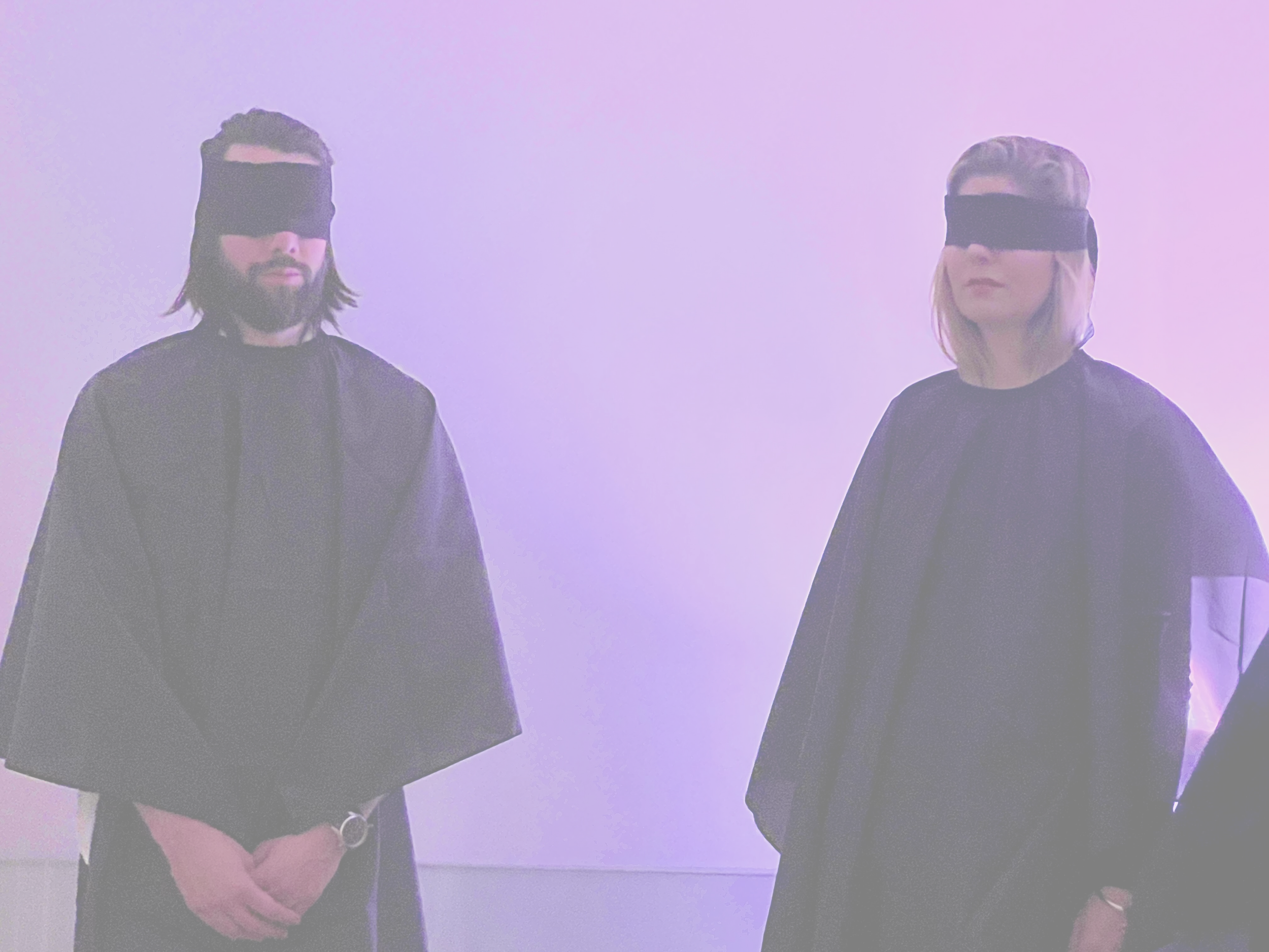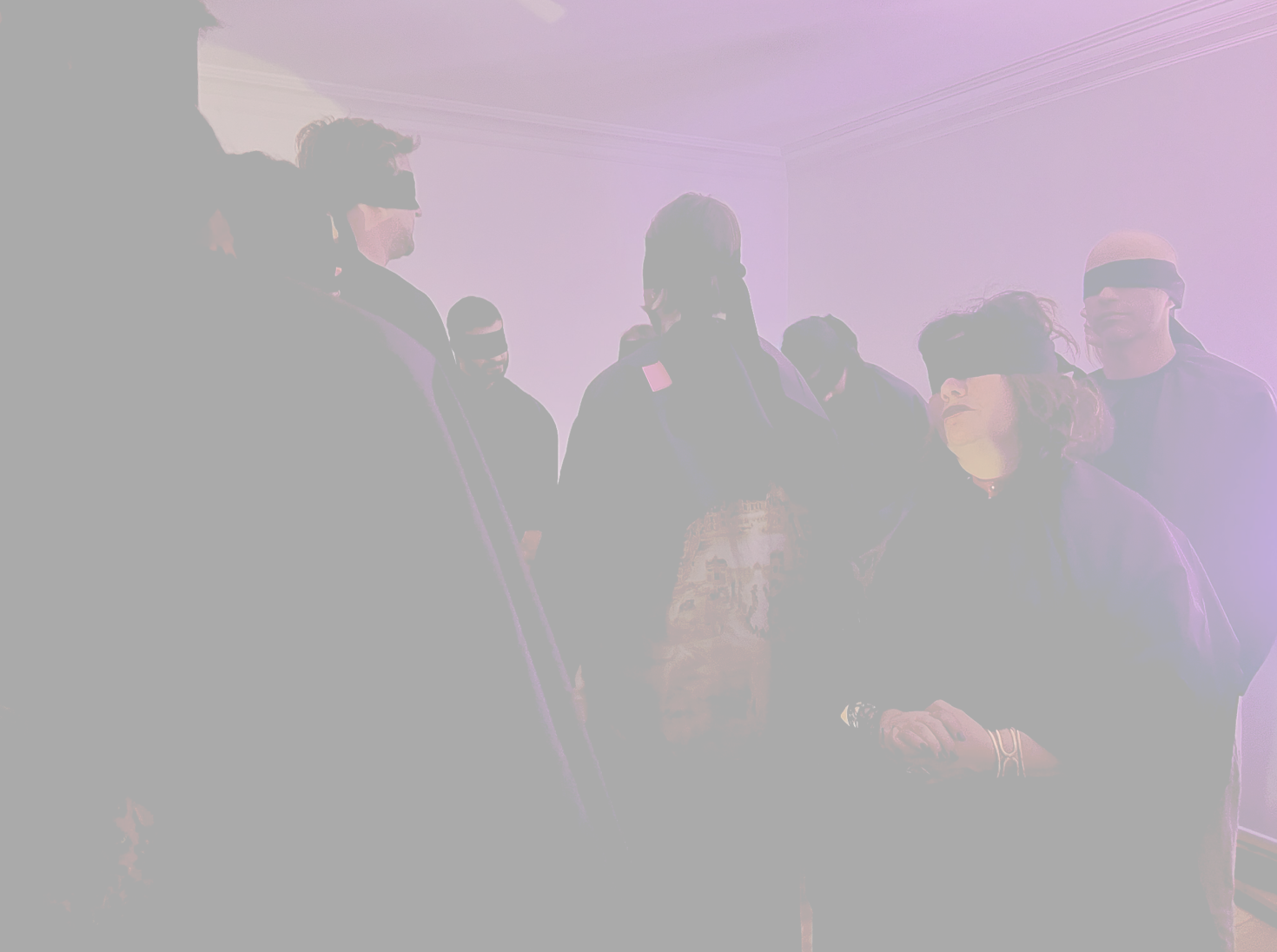 As participants arrive, they are welcomed in the room, one by one, and gently blindfolded.